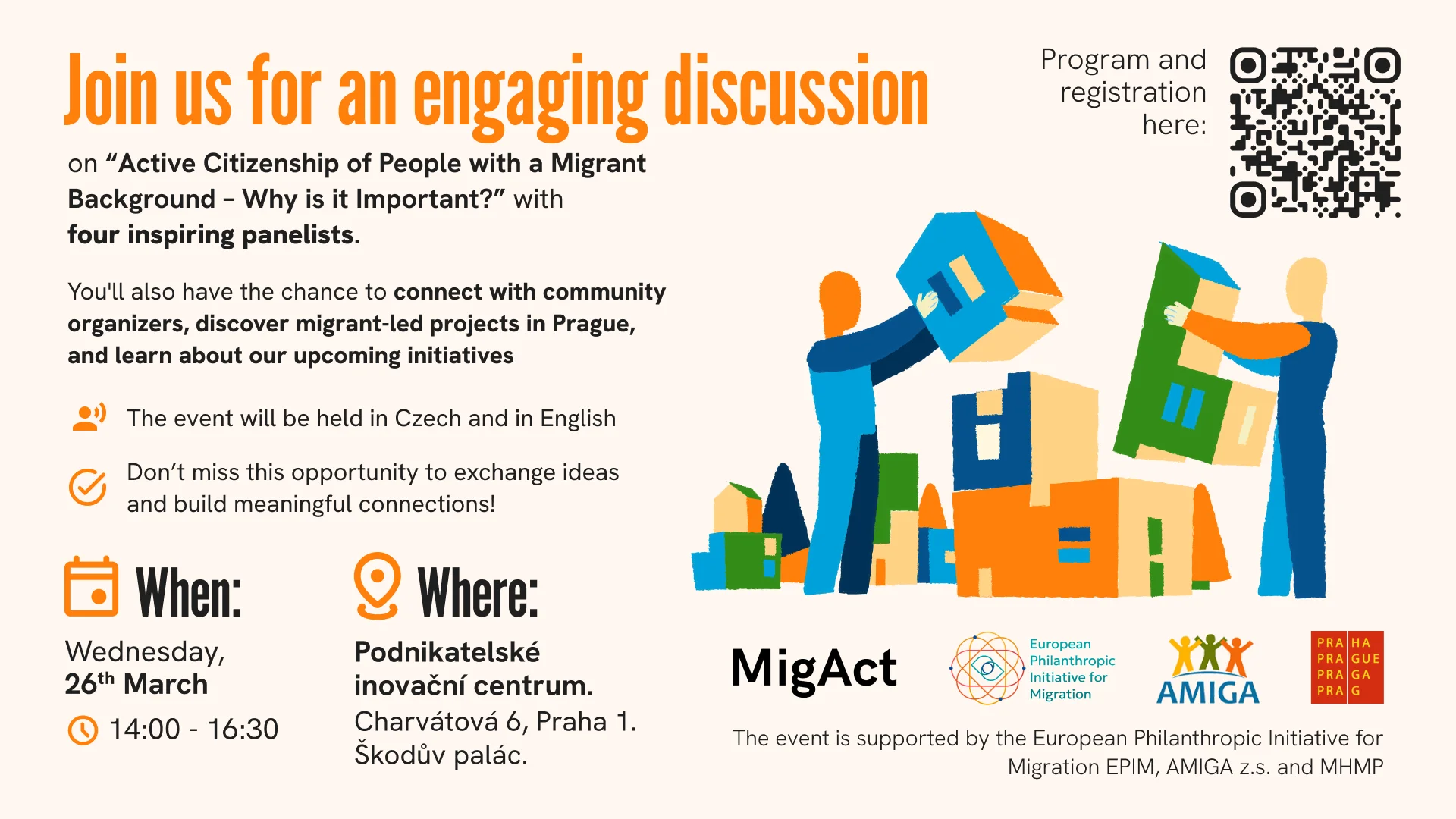 You’ll also have the chance to connect with community organizers, discover migrant-led projects in Prague, and learn about MigAct’s upcoming plans and activities.