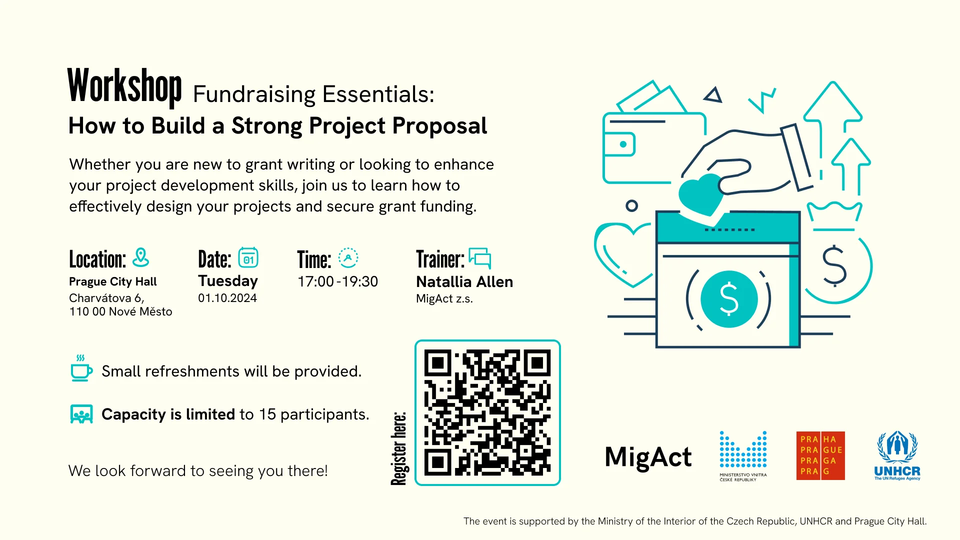 We are pleased to invite you to our upcoming workshop titled “Fundraising Essentials: How to Build a Strong Project Proposal “. Whether you are new to grant writing or looking to enhance your project development skills, this workshop will provide valuable insights and practical strategies to help you succeed. Join us to learn how to effectively design your projects to secure grant funding. We look forward to seeing you there!